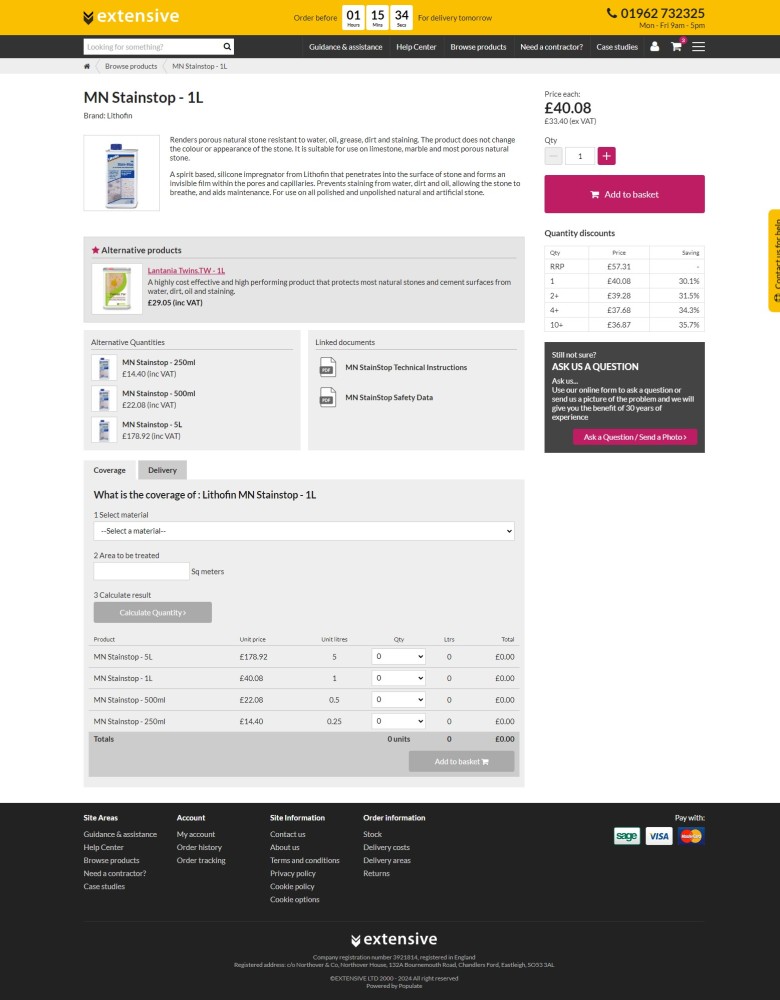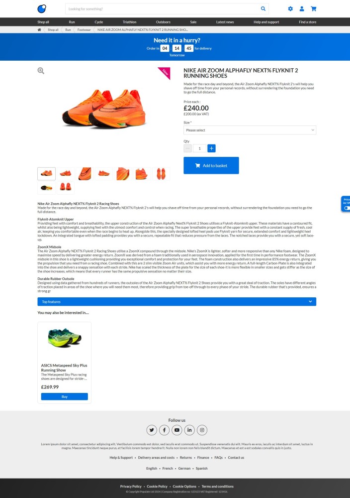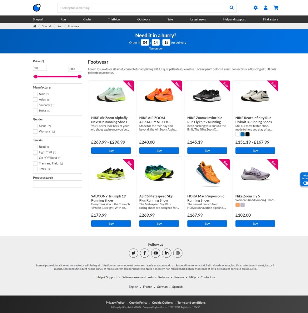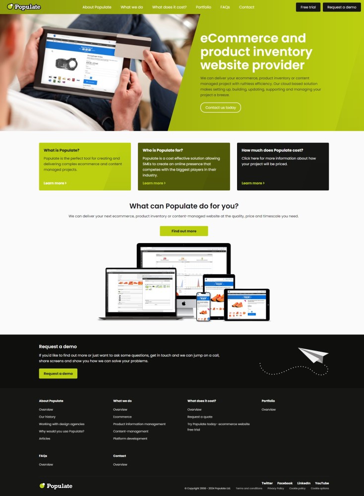 An example of the standard, quick turnaround, low cost e-commerce site Populate was built to create.