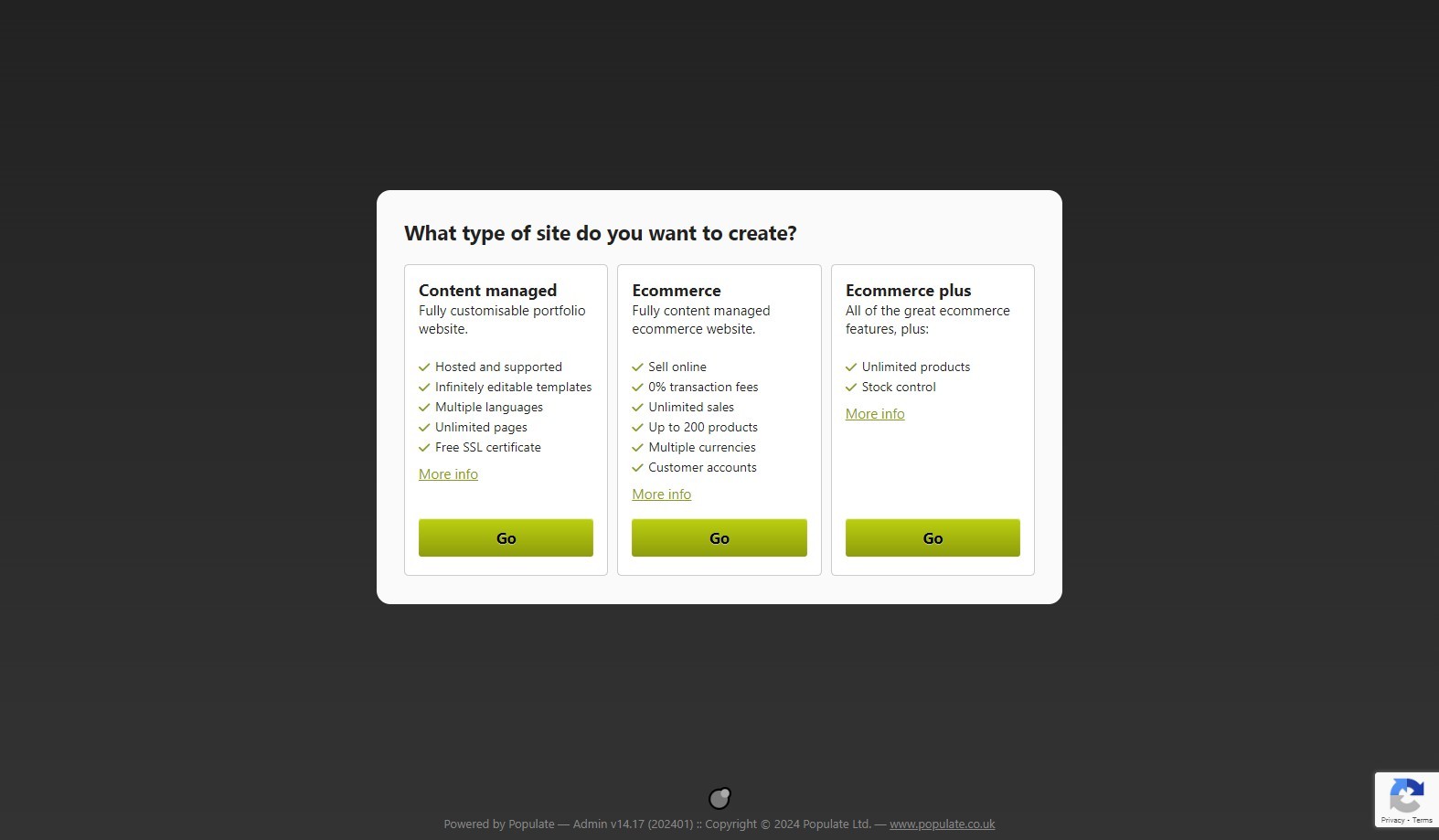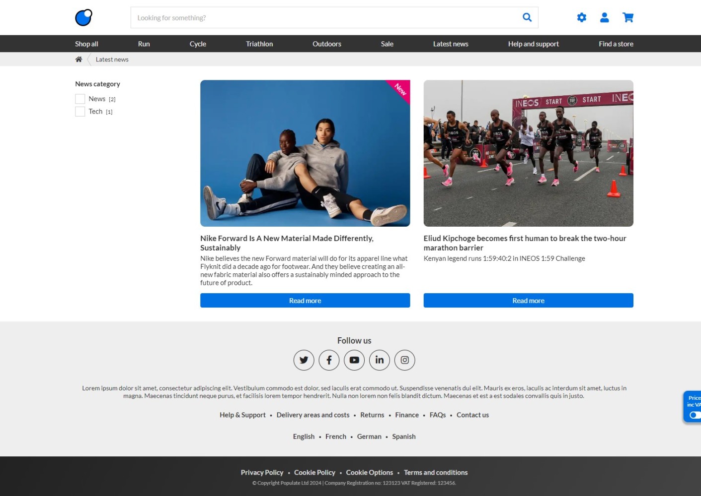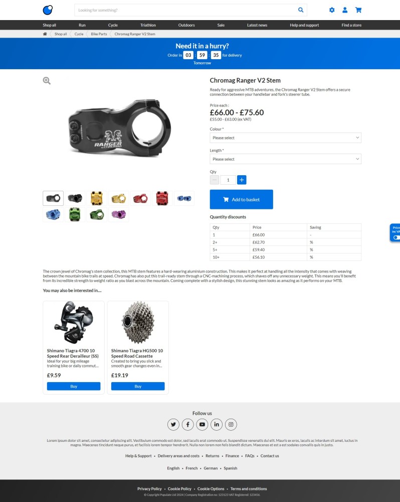 An example of the standard, quick turnaround, low cost e-commerce site Populate was built to create.