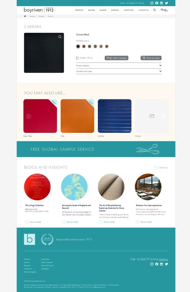 An e-commerce website whose primary function is to allow potential customers to order samples of fabric. This project was through a design agency who didn't have the in house skills to complete the technical part of the build.