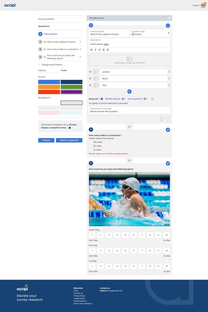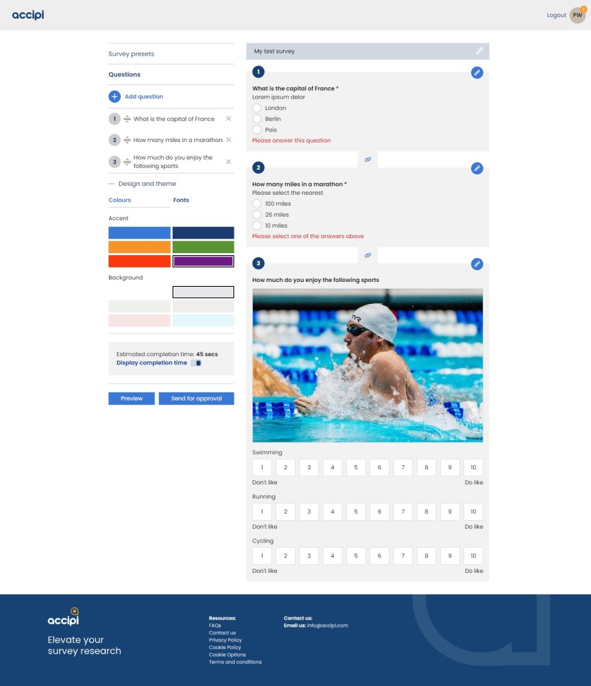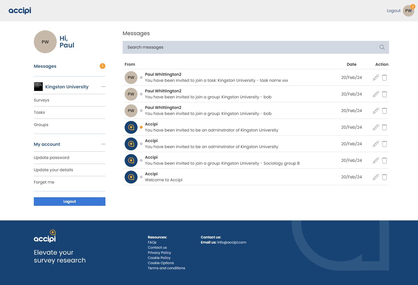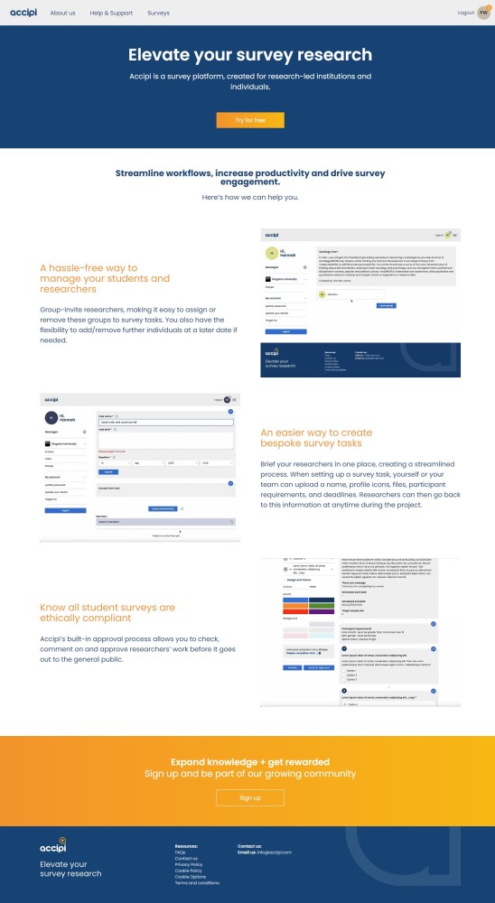 This is a survey builder platform to allow research students to create surveys. Its unique selling point was to allow lecturers to have control over the content, so that they could approve the questions before publishing and to have visibility of the results during and after the survey period. It also kept tight control of GDPR sensitive data from the participants. A reward process for people completing the surveys where they can gain points that could be exchanged for vouchers is also in place.