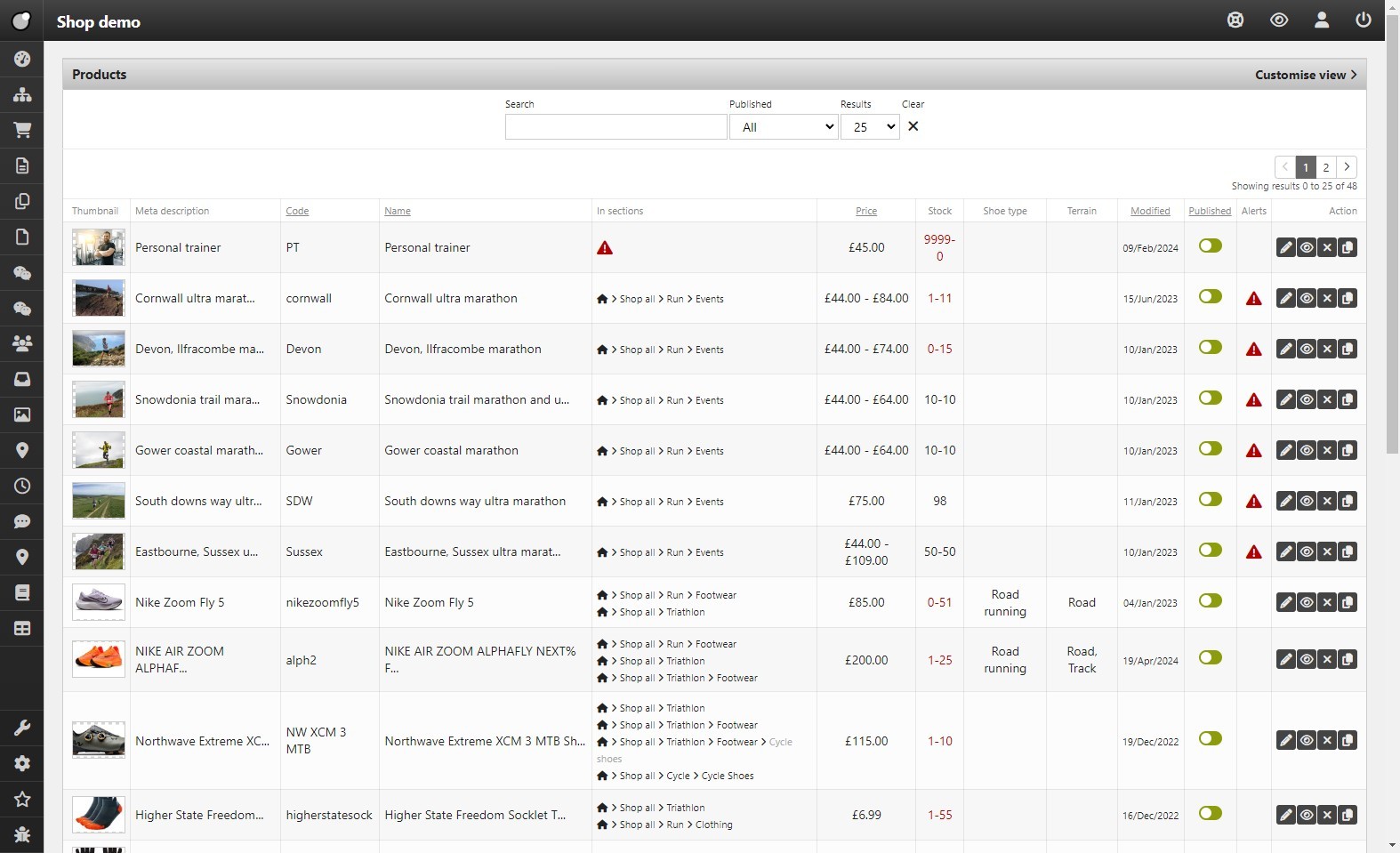 This is a demo store that shows off all of the features of the Populate CMS. I put this together as none of the front end stores are running all of the features: